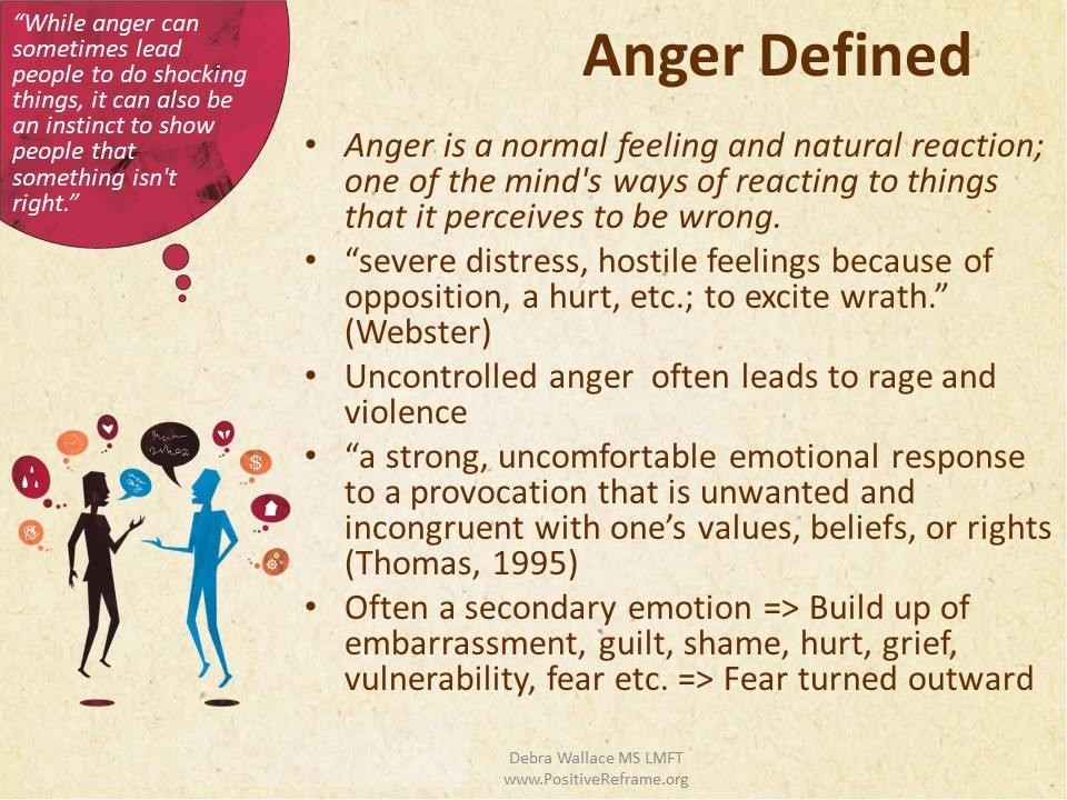 PR Anger from bad and to be avoided TO signaling areas of fear, unmet needs, and suffering and needing change